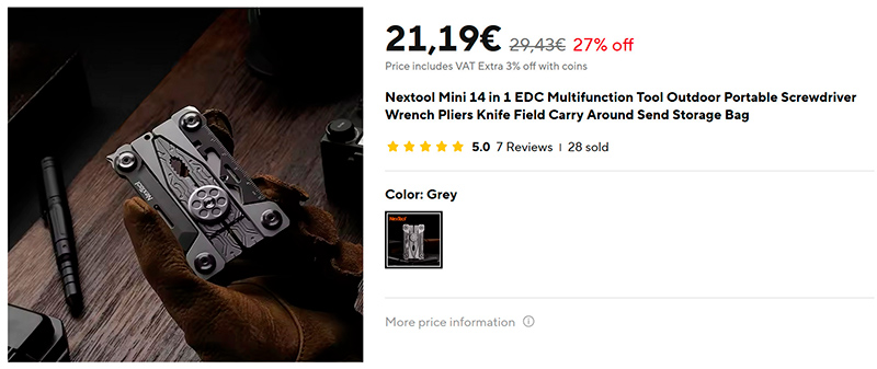 Очень компактный мультитул "14 в 1" (ссылка для РФ): нож, плоскогубцы, линейка, открывашка и многое другое.
