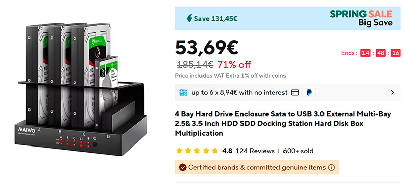 Я писал о DAS закрытого типа на пять дисков. Но такая штука стоит €150, а если не хочется тратить столько денег, но есть 3-4 старых трехдюймовых диска, которые хочется использовать для бэкапов? Вот дешевый вариант для четырех дисков (ссылка для РФ). Да, это устройство открытого типа, но зато и стоит в три раза дешевле, чем мой закрытый DAS.