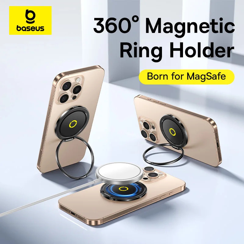 Скидка на магнитный кольцевой держатель Baseus для телефона, совместимый с беспроводной зарядкой MagSafe для iPhone.