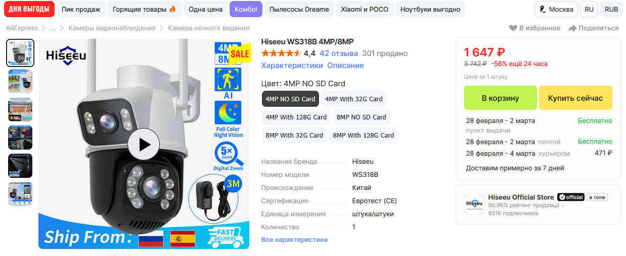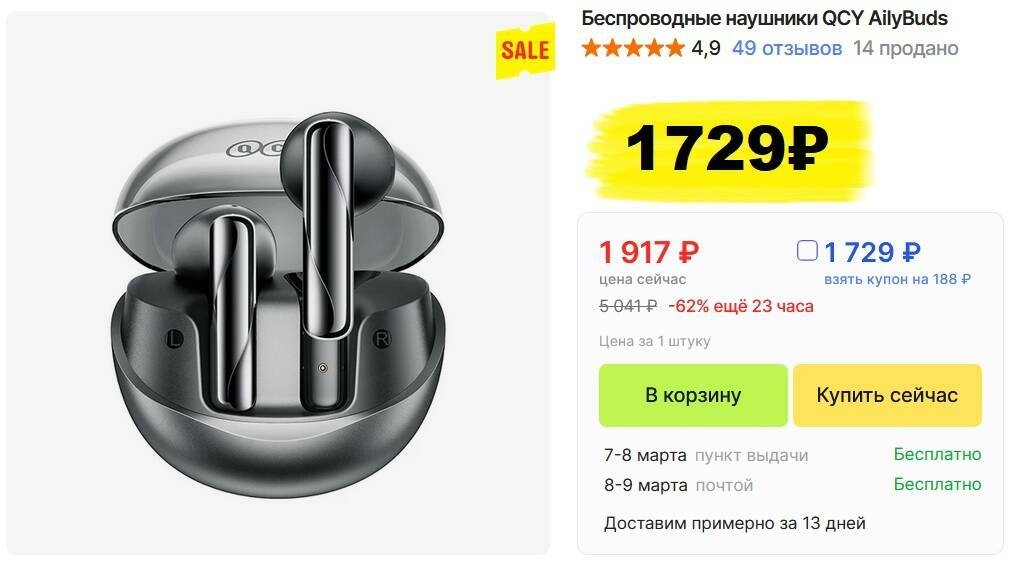 Цена после применения промокода RURING3 - примерно 857 ₽