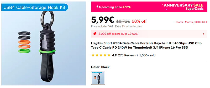 Полезная штука - кабель Type-C - Type-C в виде маленького брелока (ссылка для РФ). Повесить на связку ключей - кабель всегда будет под рукой.