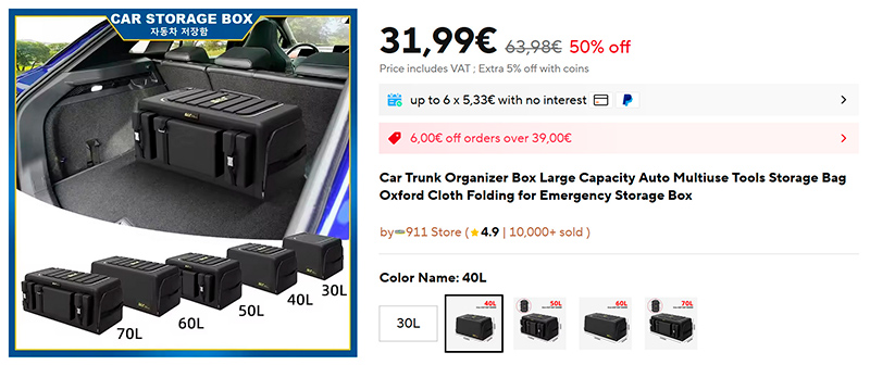 Большой выбор органайзеров для автомобиля (ссылка для РФ) на 30, 40, 50, 60 и 70 литров. Такой органайзер позволяет снизить бардак в багажнике любой машины до минимума.