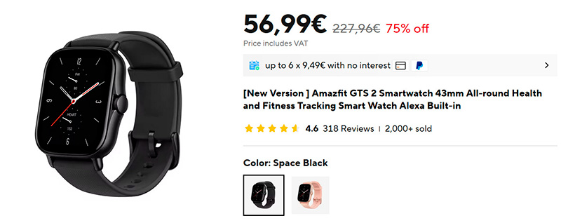 Новая версия совсем недорогих умных часов Amazfit GTS 2 (ссылка для РФ). Я делал обзор предыдущей версии. Отличный вариант для тех, кто хочет получить полноценные умные часы, но не хочет тратить на них много денег.