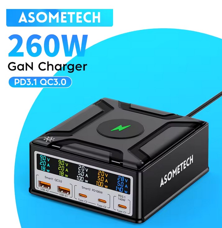 Недорогой GaN-адаптер от Movespeed на 67 Вт (ссылка для РФ). Компактный и удобный, два порта Type-C на 67 Вт и порт USB-A на 18 Вт.
