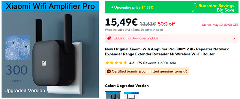 Новая версия недорогого усилителя WiFi-сигнала от Xiaomi (ссылка для РФ). Хорошая штука для использования в "медвежьих углах" дома, где сигнал WiFi неустойчивый. У меня такой усилитель несколько лет трудится в кладовке, усиливая сигнал для кладовки и гаража.