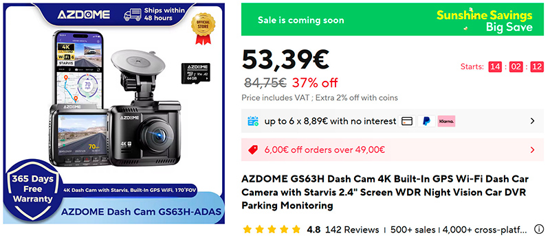 Недорогой компактный видеорегистратор с разрешением 4К AZDOME GS63H (ссылка для РФ). Встроенные GPS и WiFi, улучшенное ночное видео, легкая установка и настройка.