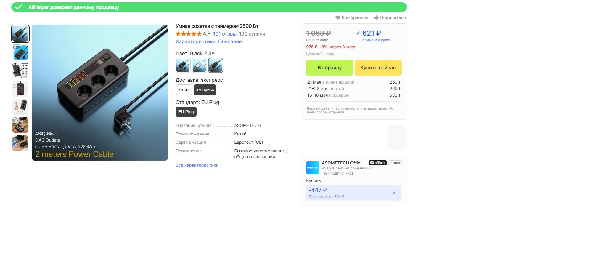 Традиционно две ссылки на два маркетплейса. Я брал на Тему (ну нравится мне там больше, чем на Али). Ссылки чистые, без партнёрок.