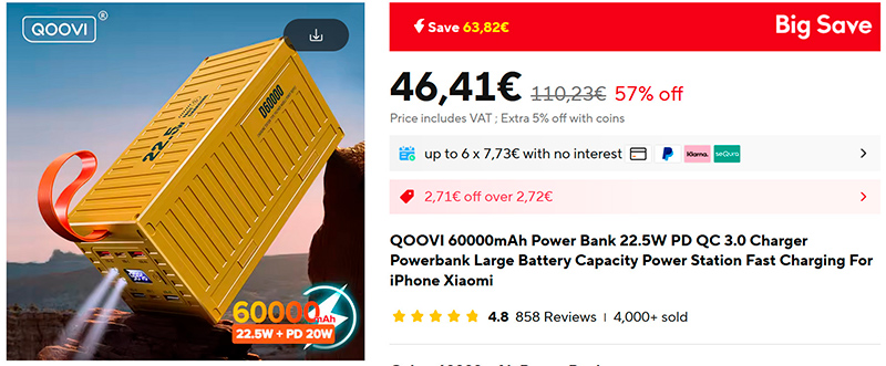 А у данного аккумулятора на 60000 мАч - более 4 тысяч продаж и 844 отзыва со средним рейтингом 4,8.