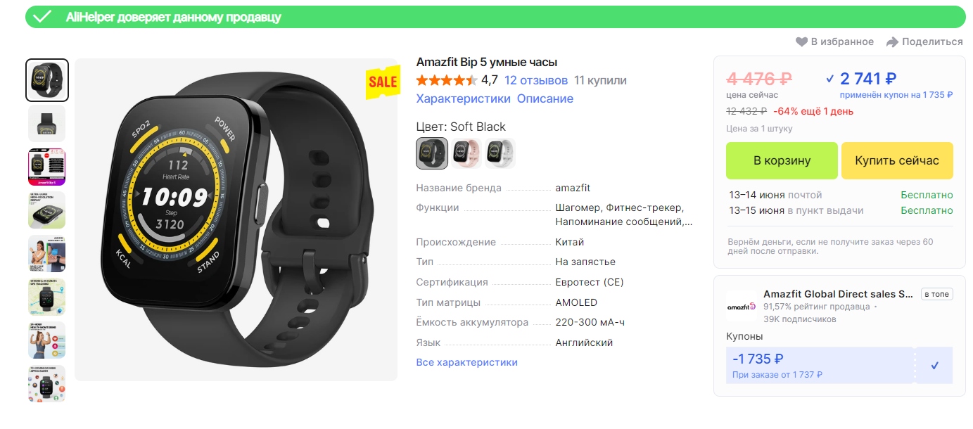 Смарт-часы Amazfit Bip 5 по супер цене, обычно в два раза дороже!