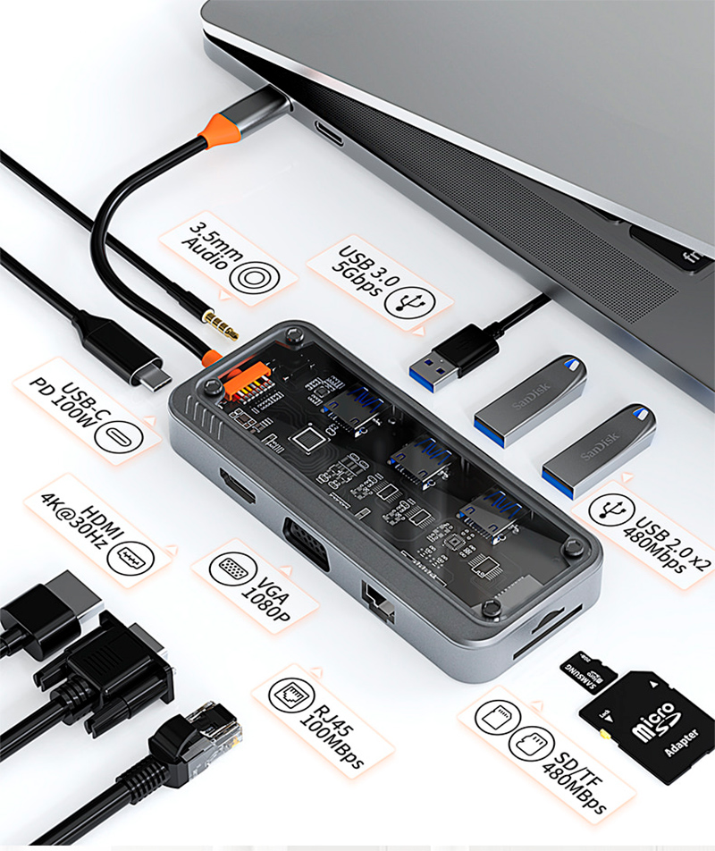 Недорогой и компактный концентратор "10 в 1". У UGREEN аналогичный концентратор стоит в четыре раза дороже.