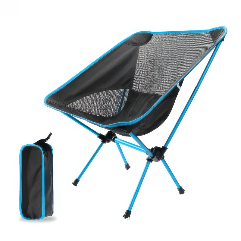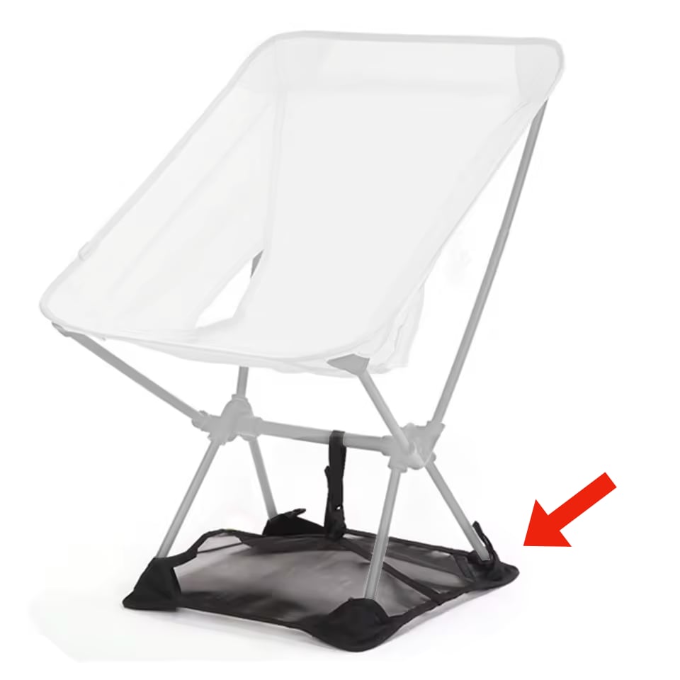 Лёгкий и прочный складной стул для кемпинга (900 г, 6 вариантов расцветки.) На случай, если юзер весит свыше 100 кг или грунт рыхлый, можно дополнительно приобрести апгрейд – коврик-упор, который одевается на ножки (см фото 2).