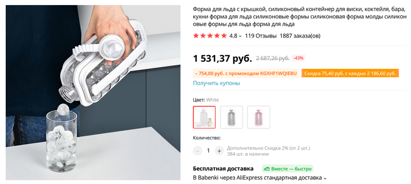 Форма для льда, в которой вода замораживается круглыми шариками, - многим такое нравится.
