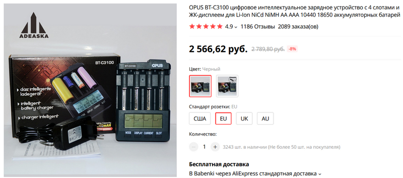 Для тех, кто пользуется перезаряжаемыми аккумуляторами. (А я пользуюсь, конечно: у меня есть устройства, где аккумуляторы нужно менять не так уж и редко, - да вот хотя бы в этих классных электромельничках.) Так вот, в комментариях к прошлой записи читатель порекомендовал вот такое продвинутое зарядное устройство для аккумуляторов разных типов. Оно дороже обычных зарядных устройств, но пишут, что и сильно лучше. Также устройство имеет дисплей для каждого заряжаемого аккумулятора, на котором показывается уровень заряда.
