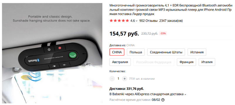 Устройство громкой связи для автомобилей, где магнитола не поддерживает соединение со смартфоном по Bluetooth. Также это устройство можно использовать как BT-колонку для воспроизведения, например, подкастов или аудиокниг со смартфона. Крепится на козырек от солнца.