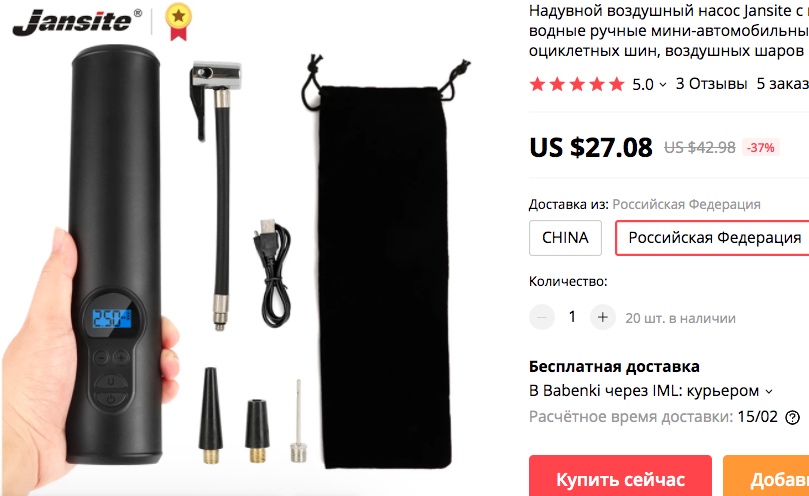 у любимого мною Jansite (производителя авторегистраторов, систем контроля давления в шинах и другой автоэлектроники) появился в продаже компактный аккумуляторный автокомпрессор и первые хорошими отзывы к нему. К 23 февраля должны успеть доставить, это сильно лучший подарок мужчине, чем любые носки ?