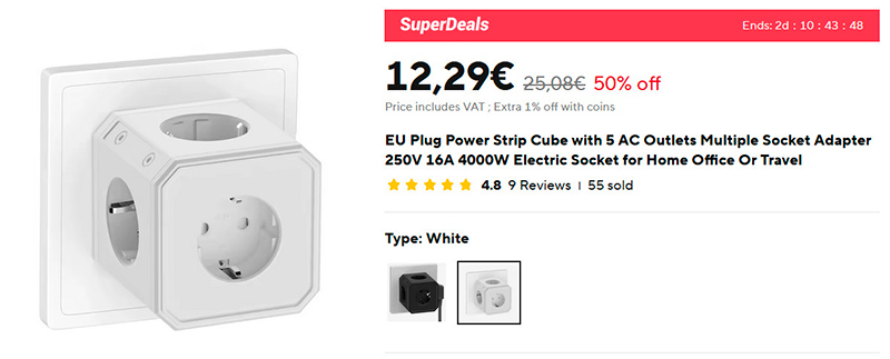 А вот по поводу пятирника - что-то сомнения. По конфигурации вилок как будто не получится в такого размера куб впихнуть их пять штук. Даже если менять расположение отверстий, вертикально/горизонтально. Разве что те, которые не видны на фотографиях, располагать диагонально? Или со смещением от центра, несимметрично. И фотографий нет, где все 5 розеток задействованы. Подозрительно... В общем, Алекс, получишь - расскажешь, как оно в итоге).