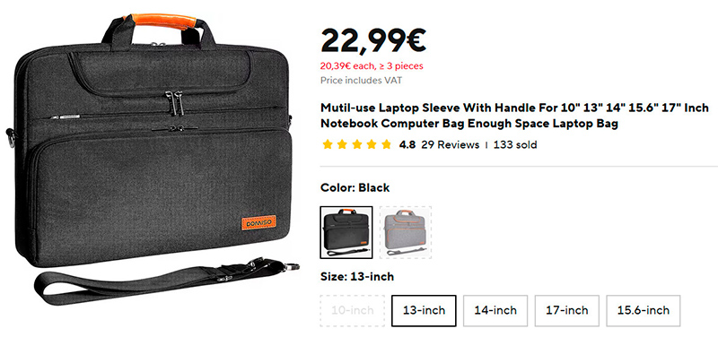 Сумка для ноутбука разных размеров. Много различных отделений, есть ручка и ремень через плечо.
