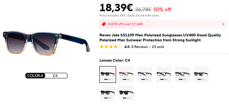Неплохой выбор стильных солнцезащитных поляризационных очков Reven Jate S31109 с различными видами стекол и с разным дизайном.