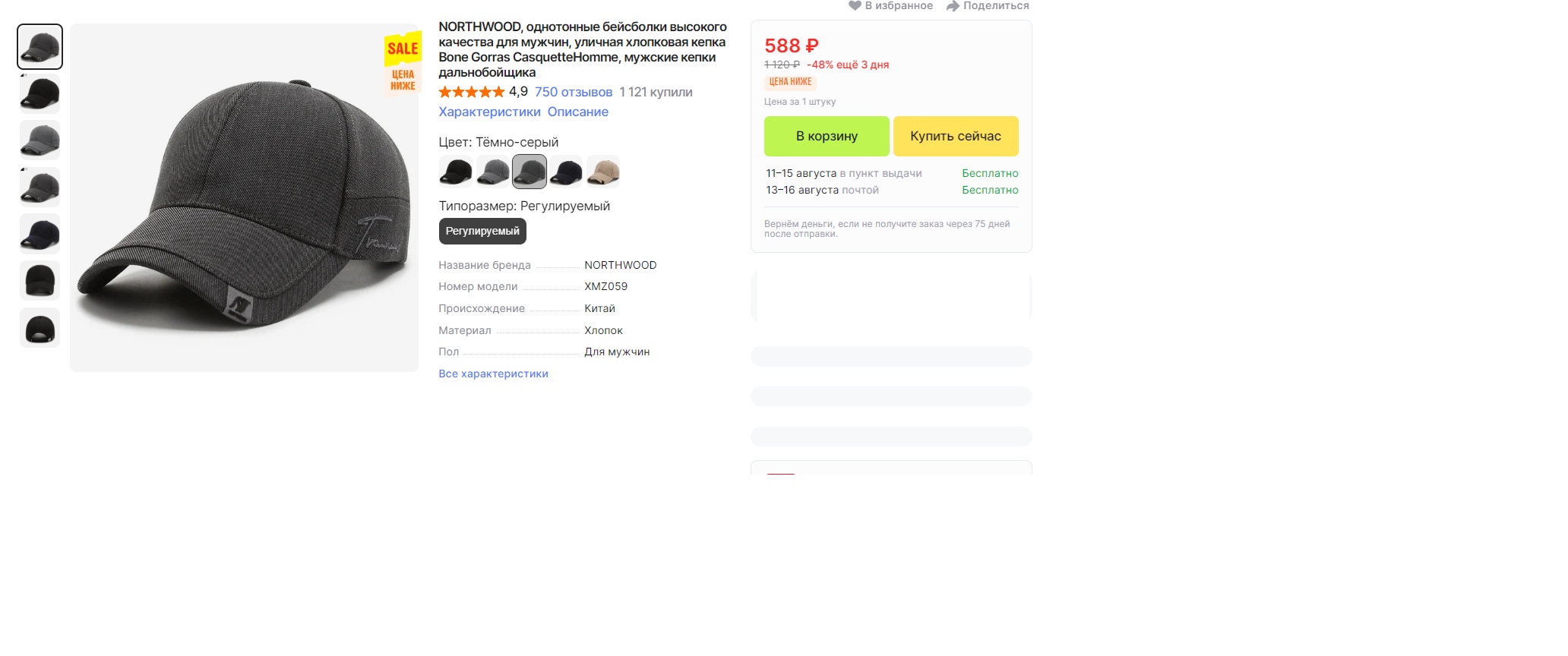 с отличными отзывами за 588₽ на AliExpress. Отличный вариант на осень. Изготовлены из плотного коттона и представлены в 5 расцветках. Подойдут на объём головы 56-60 см.