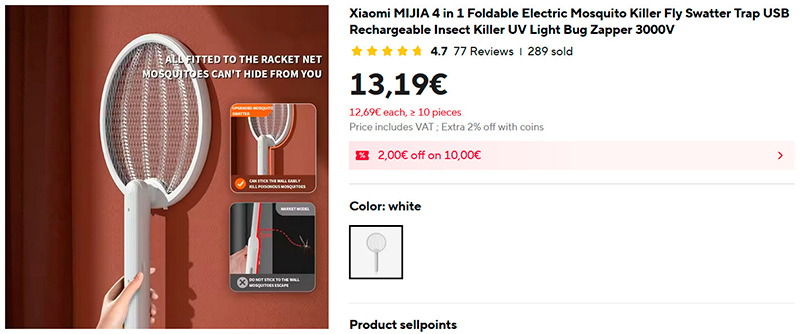 Я уже давал ссылку на вот эту электрическую мухобойку Xiaomi Mijia. До нее у меня были две - одна какая-то с Aliexpress, другая - с Amazon. Обе работали довольно паршиво - толком не убивали ни комаров, ни мух, и там проще было орудовать обычной мухобойкой или тапкой. А эта - прям другое дело. Она у нас где-то с месяц, и на ее счету - штук двадцать комаров, штук десять мух и пять ос. Даже ос рубит на лету только так, а осы, залетевшие в дом, это проблема. Со всеми справляется, достаточно включить (там загорается синий свет), нажать на кнопку с изображением молнии (это включается подача электричества) и махнуть мухобойкой в сторону летящего инсекта: раздается щелчок, небольшая электрическая вспышка, и все - инсект отправился на небо к Большой Мухе.