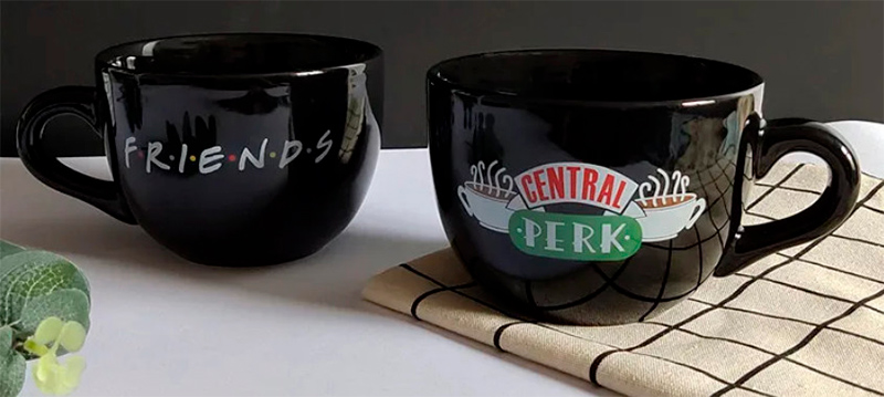 Ностальгичные керамические чашки для чая/кофе с надписью "Central Perk" и "Friends" - для фанатов сериала "Друзья", к коим мы с котом Бубликом, безусловно, относимся.