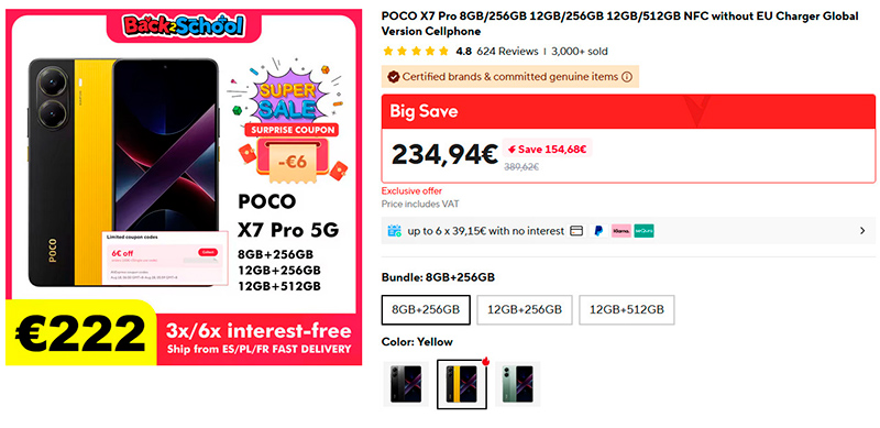 Заметно опустилась цена на POCO X7 Pro: когда я писал его обзор, он стоил €369. А смартфон очень достойный со всех сторон: очень быстрый, у него отличный дисплей, влагозащита как у флагманов, хорошая камера и очень приличная автономность. И уж за €234 его можно брать просто не задумываясь.