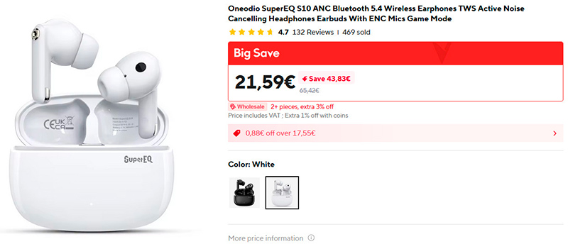 Недорогие TWS-наушники в стиле AirPods Pro от хорошего производителя Oneodio - модель Oneodio SuperEQ S10. Активный шумодав -25дБ (есть режим прозрачности), кодек AAC, Bluetooth 5.4, есть игровой режим с низкой задержкой, влагозащита IPX5, четыре микрофона с AI-шумоподавлением при разговоре, автономность до 6 часов от одного заряда, до 30 часов с подзарядкой от кейса. Под 500 продаж, средняя оценка 4,7.