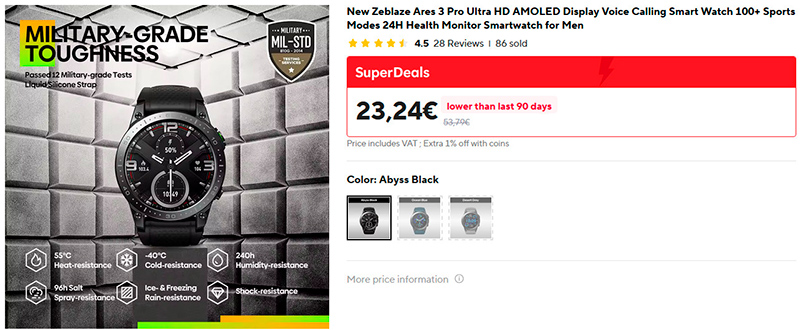 Новая версия умных часов Zeblaze Ares 3 Pro. Они стоят копейки, при этом вполне пристойные умные часы (за свои деньги) - я писал их обзор. Если вы хотите купить что-то совсем дешевое, но приличное - это вариант.