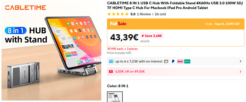 Удобный хаб "8 в 1" - для планшетов и ноутбуков. С его помощью достаточно мощный планшет можно превратить в практически ноутбук (только подключить еще клавиатуру и мышь - проводные или беспроводные).