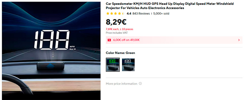 Проектор текущей скорости автомобиля на ветровое стекло. Он имеет встроенный GPS, его просто нужно подключить к питанию через порт Type-C. Адаптируется под условия освещения, в темноте яркость приглушает.