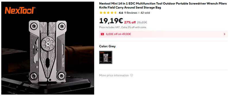 Недорогой мультитул от NexTool. Плоскогубцы, нож, открывалка, отвертка и так далее плюс чехол для ношения.