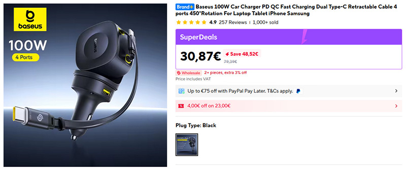 У Baseus вышел новый автомобильный адаптер суммарной мощностью до 100 Вт. Одновременно может заряжать четыре устройства, имеет два встроенных вытягивающихся кабеля Type-C и два порта. Я в своей машине использую предыдущую модель мощностью 65 Вт с одним вытягивающимся кабелем - очень удобное устройство.