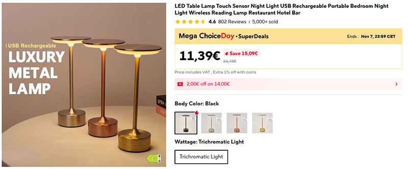 Симпатичный металлический светильник с удобным сенсорным управлением на верхней части светильника. Цветовая температура - теплая, свет регулируется в широком диапазоне. Также светильник можно использовать в качестве ночника.