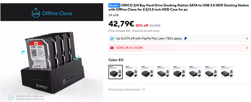 Валяются дома по ящикам старые трехдюймовые жесткие диски? Приспособьте их под бекапы или файл-помойки с помощью вот такой док-станции Orico. Есть варианты на два диска и на четыре диска. Кстати, такую док-станцию не обязательно подключать именно к ПК, у меня пара таких станций подключены к USB 3.0 NAS, и на них бекапы сливаются. Скорости вполне приличные.