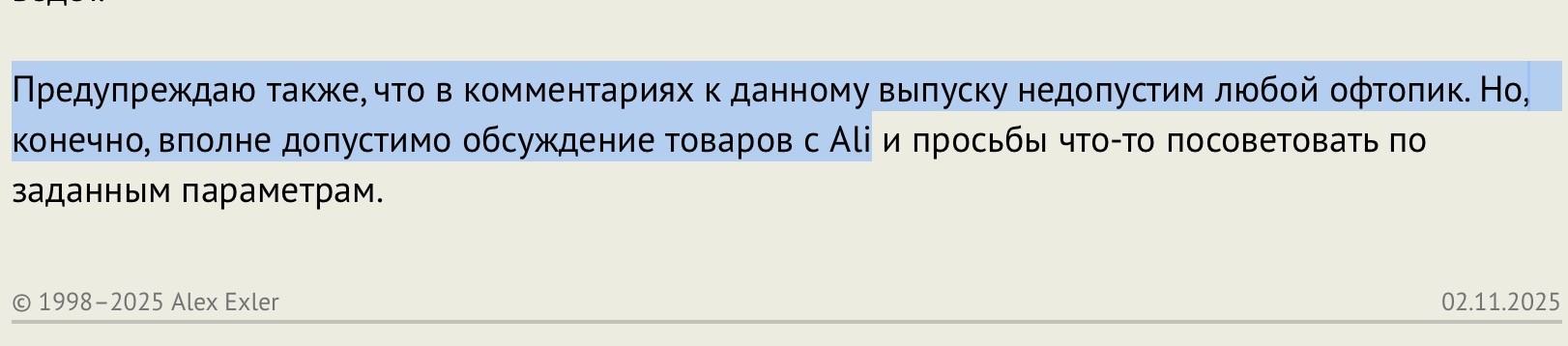 Предупреждаю также, что в комментариях к данному выпуску недопустим любой офтопик. Но, конечно, вполне допустимо обсуждение товаров с Ali и просьбы что-то посоветовать по заданным параметрам.