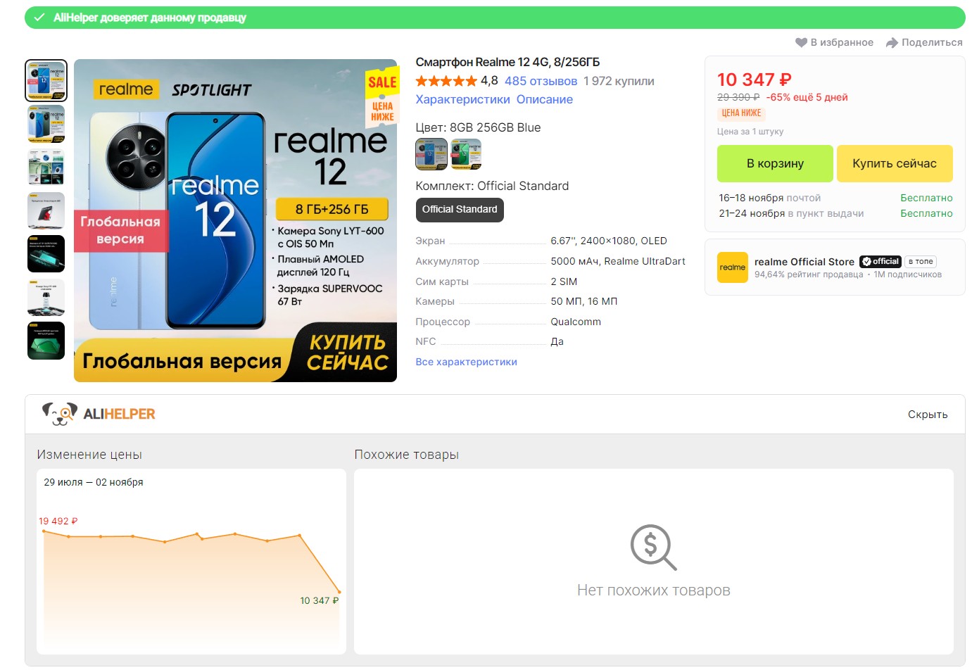 Смартфон Realme 12 4G 8/256 GB за 10347 руб.