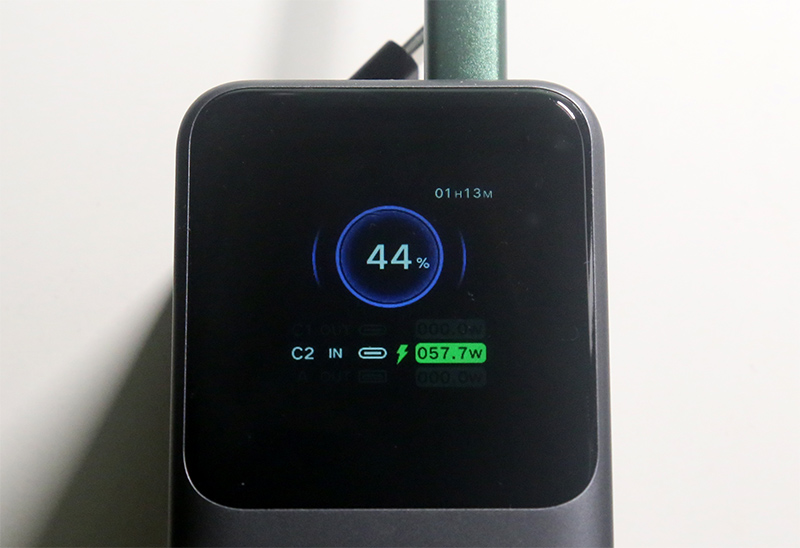 Я два раза опробовал этот аккумулятор в работе для зарядки моего ноутбука. У ноутбука батарея - 99 Вт·ч. У этого аккумулятора - 74 Вт·ч. Она должна заряжать аккумулятор ноутбука с нуля примерно на 60%. Так оно и происходило, причем я замерял мощность зарядки на старте - было где-то 96 Вт, и ноутбук заряжался очень быстро.