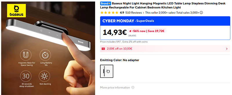 Многофункциональный светильник с сенсорным управлением, который крепится на магнитный держатель, заряжается через USB, может сниматься с держателя и использоваться автономно. Есть несколько уровней свечения - от ночника до яркого освещения, - и настройка цветовой температуры.