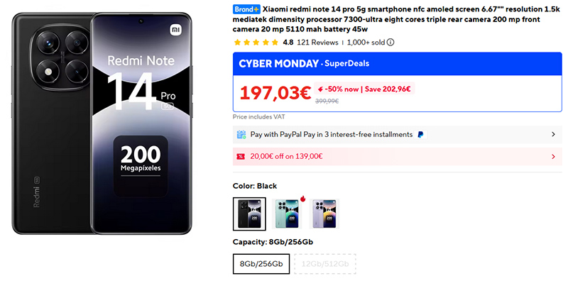 На среднебюджетник Xiaomi Redmi Note 14 Pro 5G цена опустилась ниже 200 евро. При этом смартфон - очень даже достойный, я делал подробный обзор