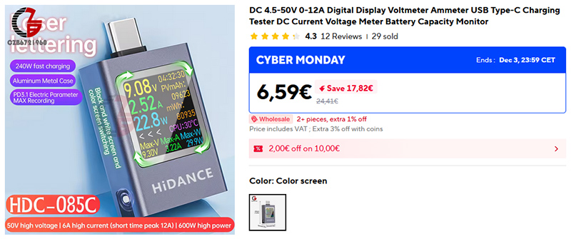 Одно из самых, на мой взгляд, удобных устройств для мониторинга параметров зарядки смартфонов, планшетов, наушников и так далее - HiDANCE