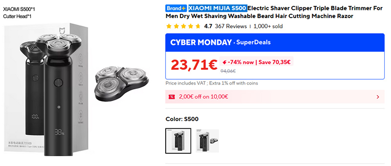 Хорошо уронили цену на отличную электробритву Xiaomi Mijia S500, на Амазон она стоит в два раза дороже. Я сам пользуюсь следующей моделью - Xiaomi Mijia S700, но она стоит 70 евро.