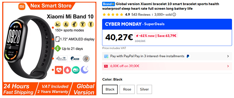 Кто пользуется фитнес-браслетами - глобальная версия Xiaomi Mi Band 10 появилась в продаже. Он оснащён 1,72-дюймовым AMOLED-экраном с разрешением 212×520 пикселей, яркостью до 1500 нит с поддержкой AOD. Есть мониторинг пульса, SpO₂, сна, стресса, VO₂ max и более 150 спортивных режимов с 9-осевым датчиком, компасом и автораспознаванием активности. Аккумулятор 233 мАч обеспечивает до 21 дня работы в типичном режиме или 9 дней с AOD, с магнитной зарядкой; совместим с Android 8.0+ и iOS 12+, без встроенного GPS и NFC.