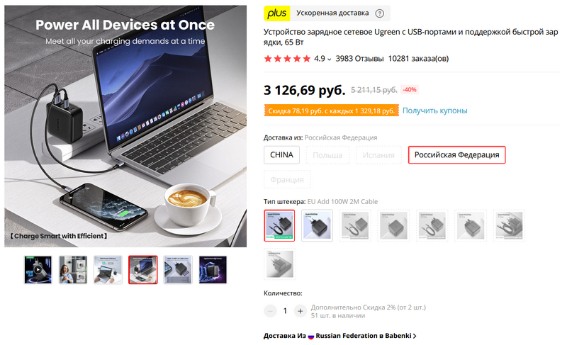 Ко мне этот адаптер уже приехал. При всех своих возможностях адаптер очень компактный, с нормальной европейской вилкой. Мой ноутбук прекрасно питает и заряжает, одновременно заряжает смартфон. Я этим адаптером заменил старый адаптер для ноутбука: тот был с китайской вилкой, поэтому требовал переходника, также у него был всего один порт, а у этого адаптера их аж четыре. Классная штука, да и производитель - известный и достойный.