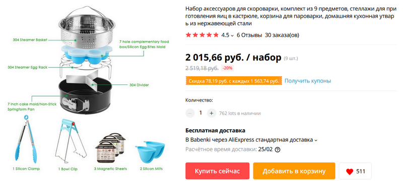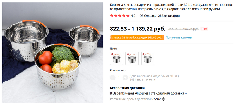 Удобные корзины трех размеров для приготовления на пару. Годятся как для обычных кастрюль, так и для скороварок.