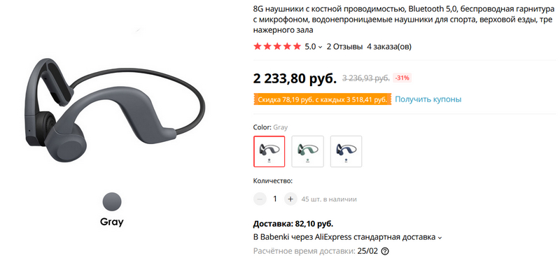 Недорогие наушники костной проводимости со встроенным MP3-плеером. (От смартфона по Bluetooth, конечно же, тоже работают.) Трех разных цветов. Очень удобно использовать такие наушники для занятий спортом (особенно слушать музыку во время плавания), для прослушивания музыки и подкастов на улице - это удобно и безопасно, так как уши остаются открытыми. Я на улице использую только наушники такого типа, но мои дорогие (13 тысяч рублей), а эти дешевые. Я такого типа недорогие китайские наушники тестировал, оказались вполне приличными.