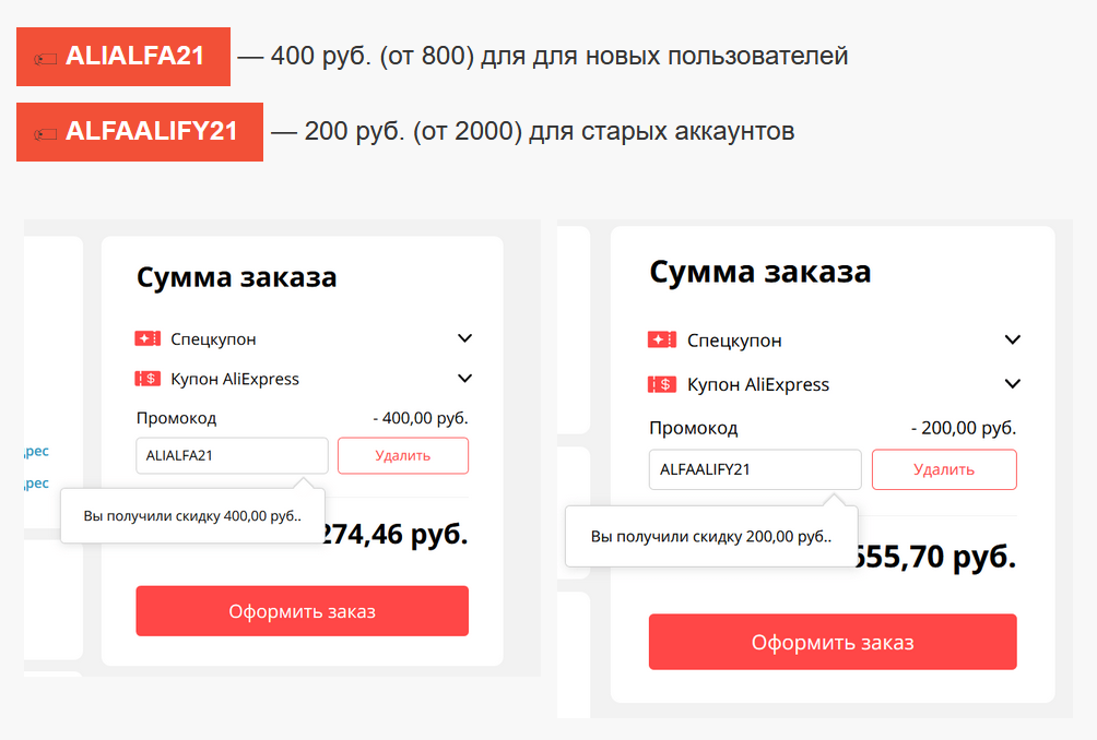 ALIALFA21 — 400 руб. (от 800) для для новых пользователей