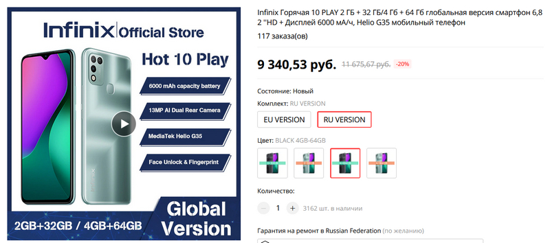 На сверхбюджетный смартфон Infinix Hot 10 Play все-таки опустили цену до 8-9 тысяч рублей, что при имеющейся конфигурации выглядит достаточно интересно.
