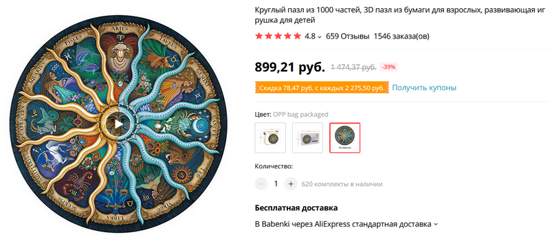 Круглый пазл из 1000 частей с зодиакальными созвездиями.