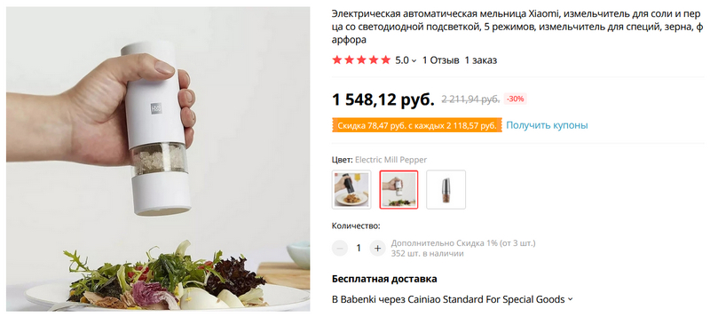Электромельнички для соли и перца от Xiaomi с керамическим измельчителем. На батарейках. Закажу себе, люблю я это дело. Я, правда, предпочитаю вот такие гравитационные (по первой ссылке один такой вариант тоже есть, причем с металлическим корпусом), но и на эти интересно посмотреть.