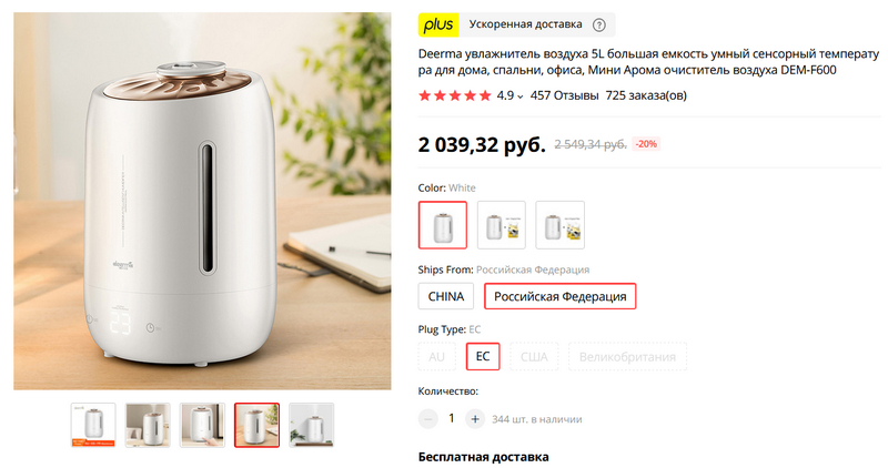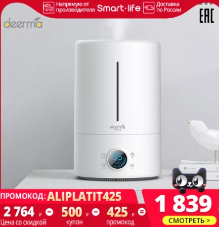 Судя по отзывам, интересный увлажнитель воздуха Deerma. Хорошо выглядит, большая емкость (до 4 литров), вода в нем фильтруется (можно купить в комплекте с запасными сменными фильтрами), показывает температуру, имеет сенсорное управление и пульт дистанционного управления. Есть доставка с российского склада.